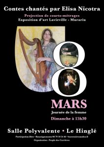 Pour le décrochage de l’exposition de Mihaila Murariu et Laetitia Lavieville, en occasion de la fête de la femme, une invitation musicale à traverser les mers et les forêt en quête des archétypes du féminin: ce concert pour harpe celtique et chant est ponctué de contes et saynètes d’Italie, Bretagne, Suède et Iles Britanniques, illustrant les chansons, recréant avec la musique et la parole un jeu de cartes où reines et paysannes, sorcières et piratesses se donnent la main pour danser les siècles.