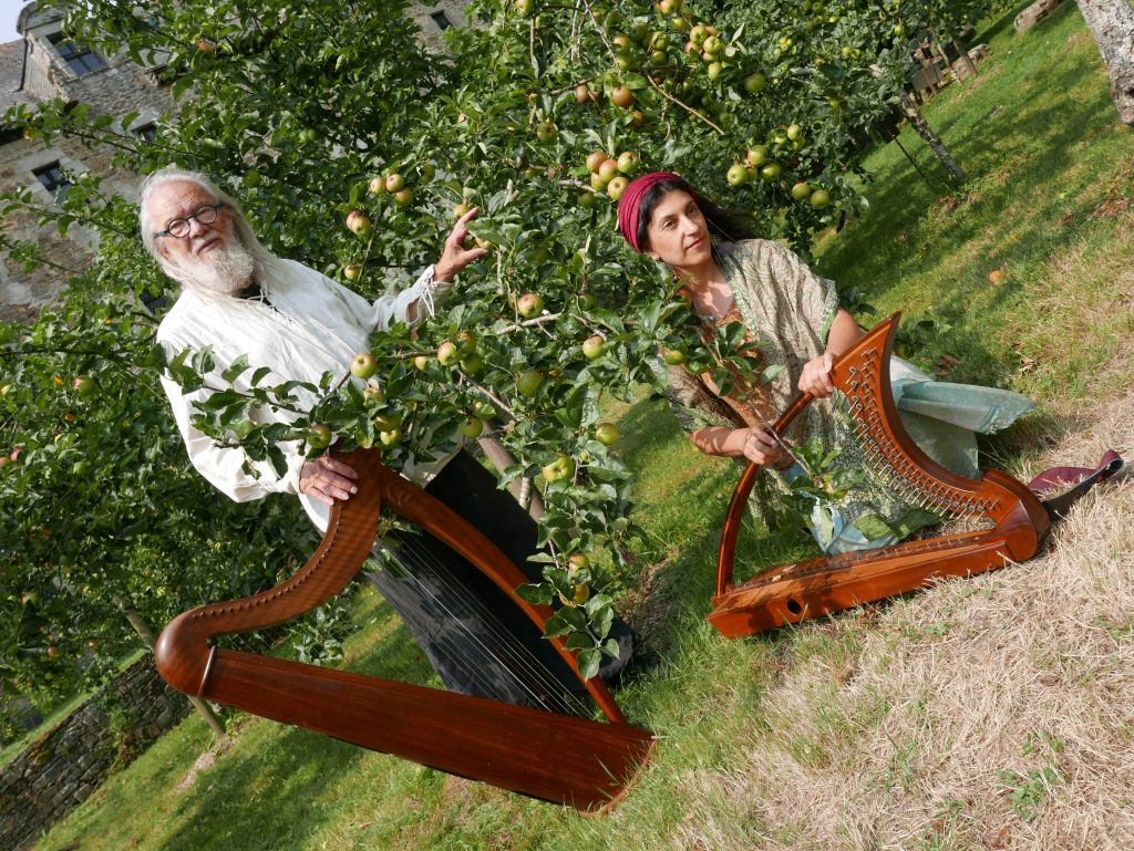Un hymne aux arbres et au monde végétal selon le calendrier celtique: deux harpes, deux voix et un tambour pour une forêt de compositions instrumentales et chantées, traditionnels d’Irlande, Angleterre, Italie et Bretagne, avec quelques bourgeons de Renaissance ici et là.